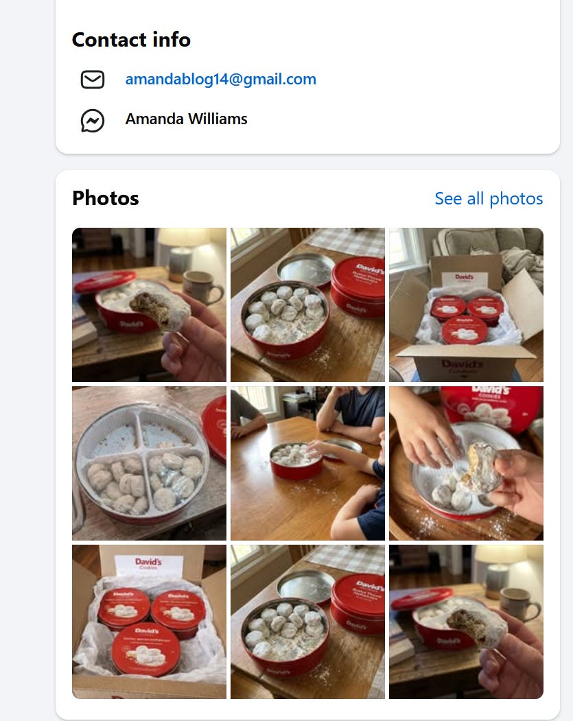 In an effort to document this one facebook profile that kept sending me fake Barnes and Nobles pictures, I have found that Facebook thinks I’m interested in the account. I checked it out again today, and instead of fake boxes of hardcover books all the posts have changed to be about cookies?