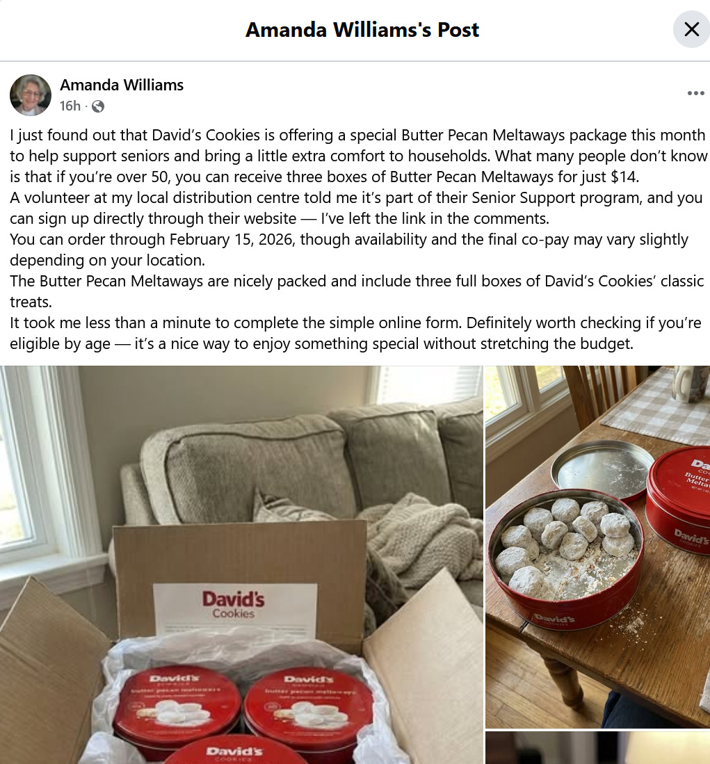 Ok, the Facebook profile I reported is still posting AI scams. But they're cookies now.